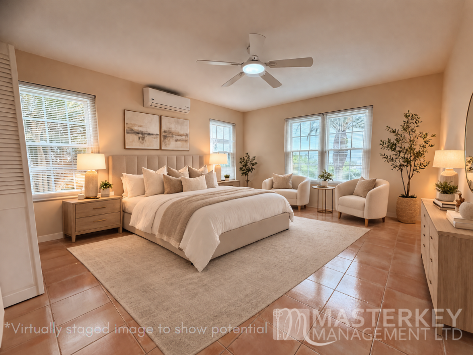 The bedroom is generously proportioned, filled with natural light and offers enough space to create your own retreat. With clean finishes, tiled flooring throughout, and both ceiling fan and air conditioning, comfort is built in.